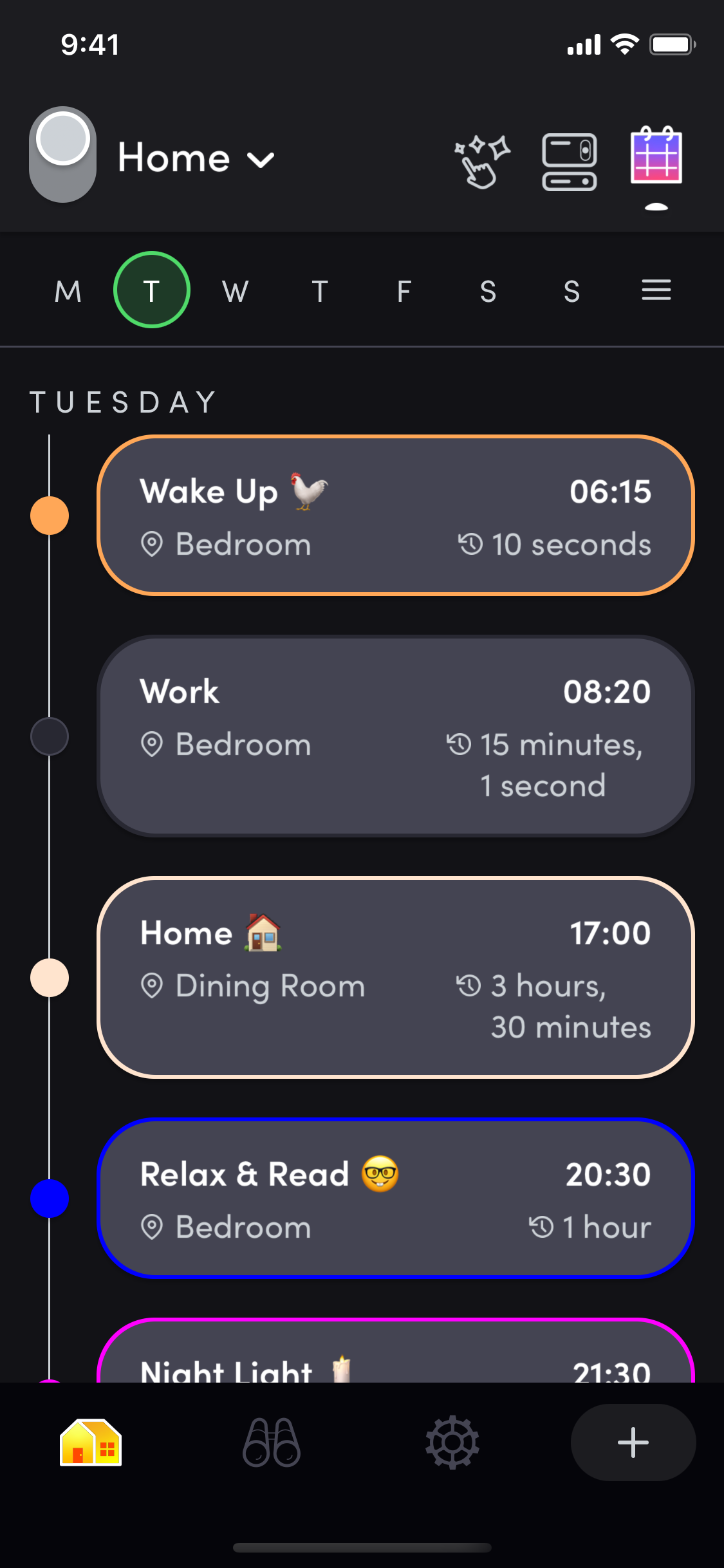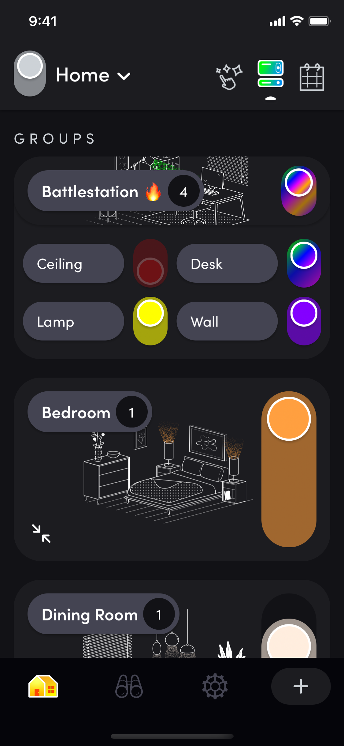 The LIFX app is an IoT app that can setup, control and update LIFX smart lights and switches. The iOS and Android apps are both native and utilise a proprietary binary protocol to communicate with the lights. The app also uses ReactiveExtensions (RxSwift/RxJava) to manage a large number of real-time events from user's devices communicating over the local network as well as the cloud. Users can run real-time effects on their lights driven by the app as well as schedule changes from a calendar interface. There is also a widget and watchOS app, the latter of which is written in SwiftUI.